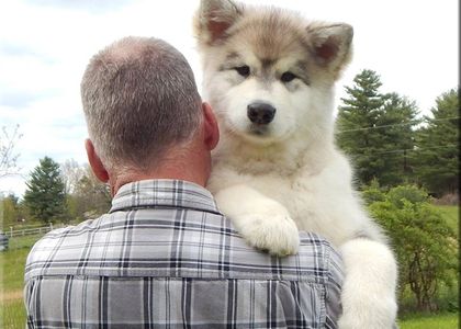Since they are pack oriented, Malamutes are generally not "one-man" dogs. They are an extremely intelligent breed that can be very stubborn and easily bored. They are not typically recommended to a first-time dog owner as mistakes are easy to make and sometimes hard to correct unless you really know what you are doing. They can be a challenge to train, due to their stubbornness. It is said that to teach a Malamute to do something once or twice is very easy, because they are quite intelligent and quickly learn new tasks. To get them to repeatedly do something over and over again is much more challenging, due to their stubbornness and the fact that they become easily bored. This trait is quite common in all of the northern breeds. Many Malamutes end up in the pound and even destroyed because an owner fell in love with the cute puppy but could not control the large, stubborn, powerful adult