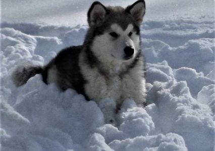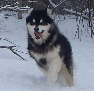 Originally an arctic sledge dog, Alaskan Malamutes not only still perform their duties as a sled dog, but in today's times, this working dog also competes in obedience, agility, and conformation showing. The Alaskan Malamute "desirable" size is 70 lbs to 100 lbs. A powerful and substantially built dog. Its head is broad, Eyes are almond-shaped, brown, NEVER BLUE; chest is deep & strong; Double coat, course guard hairs to protect a dense woolly, oily undercoat.Bushy tail, carried over its back, like a waving plume. Colors range from light gray to black, sable to red to all white. Their activity level is high and they demand daily both a physical & mental workout. A Malamute will insist on having a part in all family activities.They can be dog aggressive and extremely predatory. They are a very pack-oriented breed and therefore do best when included in the family rather than shut outside away from the rest of the "pack."Virtually always extend a tail-wagging, face-licking welcome to strangers.